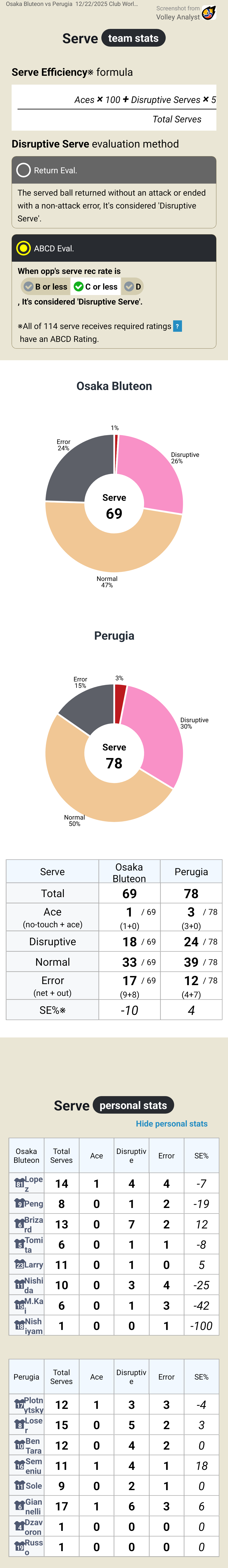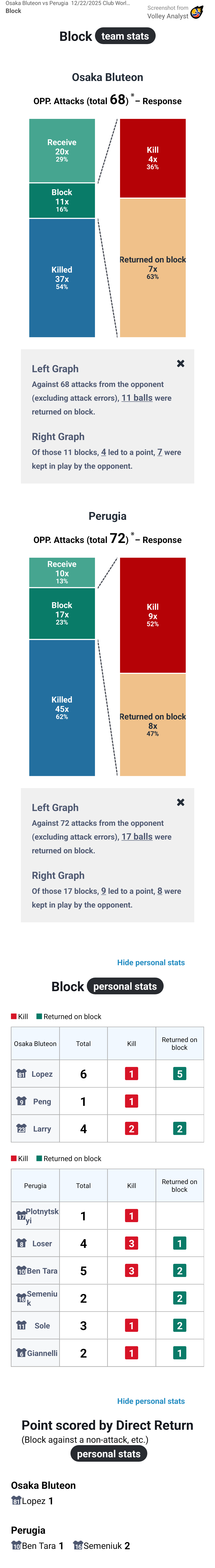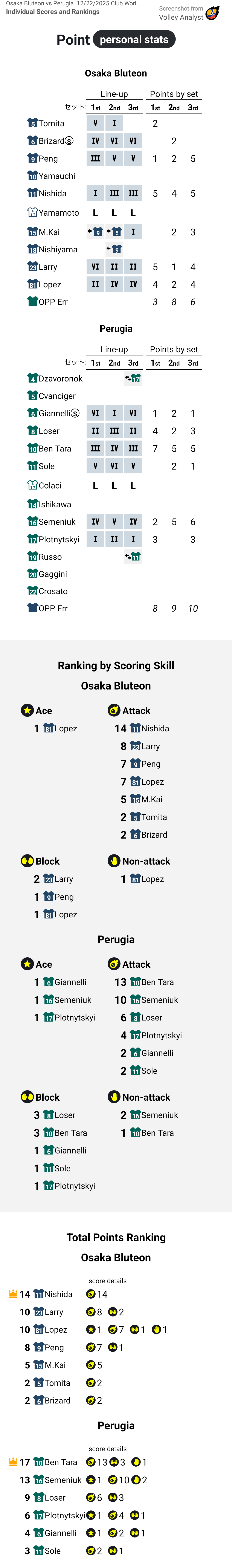 Osaka Bluteon vs Perugia