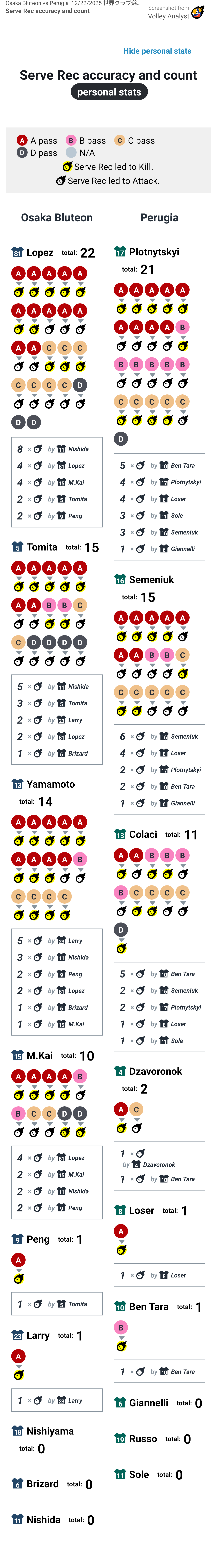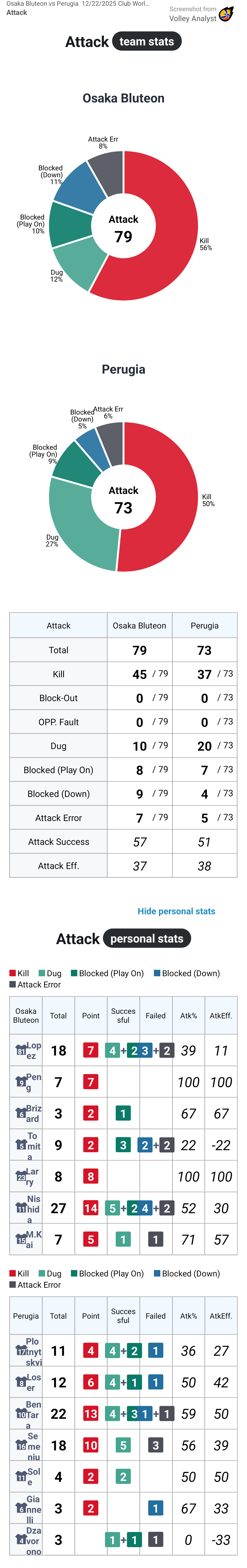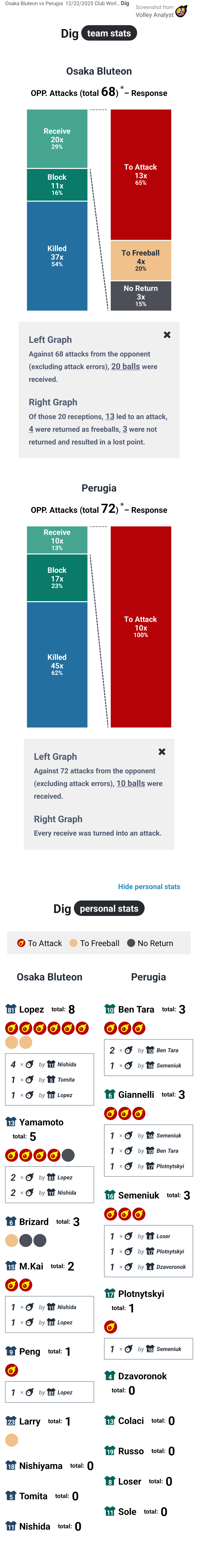 Osaka Bluteon vs Perugia